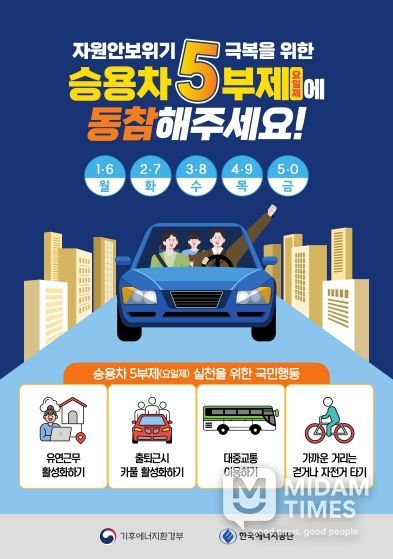 한편 이번 승용차 5부제는 자원안보위기 경보가 해제될 때까지 한시적으로 운영될 예정이다.