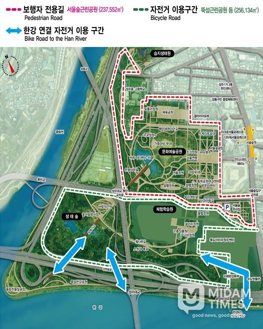 미담타임스 김준완 기자 | 서울시는 서울숲근린공원 내 보행 안전 및 쾌적한 공원 이용을 위해 공원길 총 22,747.6m을 ‘보행자전용길’로 3월 26일부터 지정한다고 밝혔다.