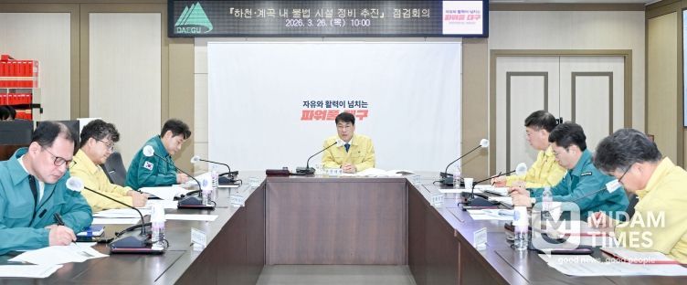 미담타임스 전해찬 기자 | 대구광역시는 다가오는 여름철 집중호우 및 태풍에 대비해 3월 26일(목) 권한대행 주재로 ‘하천·계곡 내 불법 점용시설 정비 추진 점검회의’를 개최하고 전면적인 대응 체계 점검에 나섰다.