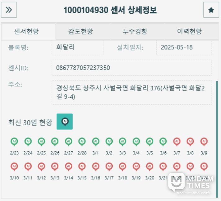 미담타임스 김준완 기자 | 상주시는 상수도 운영의 효율성을 높이고 물 자원의 낭비를 줄이기 위해 인공지능(AI)기반 상수도 누수감지시스템을 추가 도입한다고 밝혔다. 낙동면 일원에 약 188대의 누수감지 장비를 추가 설치할 계획이며, 이를 통해 기존 시스템과 연계한 누수관리 체계를 구축할 예정이다.