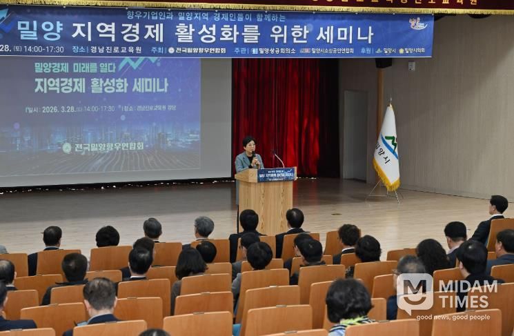 미담타임스 황명수 기자 | 경남 밀양시는 지난 28일 경남교육청 진로교육원 강당에서 전국밀양향우연합회 주최로 ‘지역경제 활성화 세미나’가 열렸다고 밝혔다.