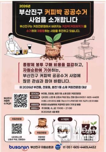 미담타임스 남혜영 기자 | 부산 부산진구는 오는 4월부터 부전동, 전포동, 범천1동에 소재한 커피전문점을 대상으로 커피박 공공수거 사업을 시행한다.