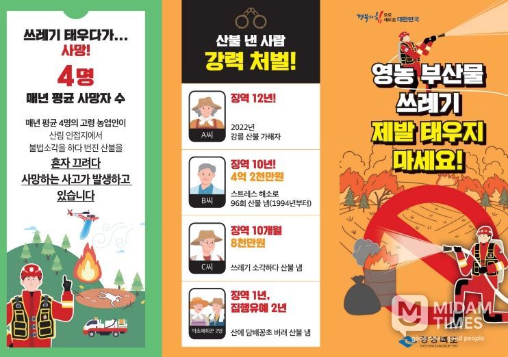 이 밖에도 경북도는 민방위 사이렌을 활용한 산불 예방 홍보 및 주민대피 계획을 수립하고 도-시․군 실시간 소통채널을 구축해 즉각적인 대응이 가능하도록 개선했으며, 기상정보와 산불 위험 지수를 매일 공유하고 산불 발생 상황을 즉시 전 시․군에 전파해 인명 피해가 발생하지 않도록 노력하고 있다.