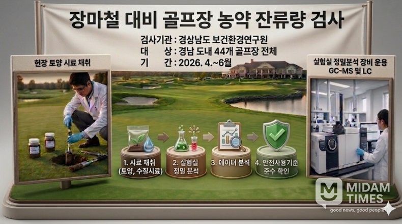미담타임스 김준완 기자 | 경상남도 보건환경연구원은 장마철을 앞두고 도내 골프장을 대상으로 농약 잔류량 검사를 실시한다고 밝혔다.