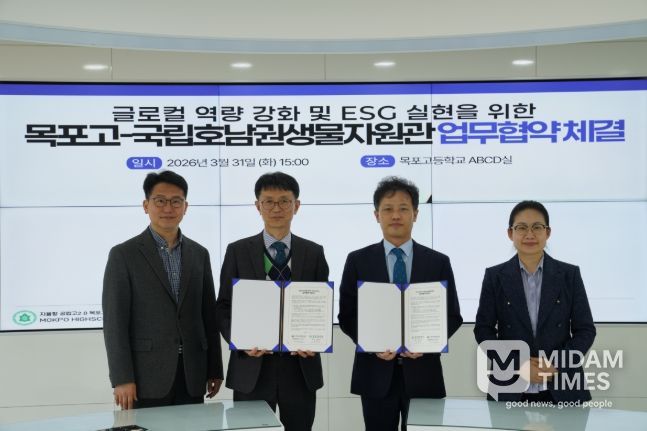 미담타임스 김준완 기자 | 국립호남권생물자원관과 목포고등학교은 3월 31일, 생물자원 및 환경교육 확대와 학생들의 진로탐색 기회 제공을 위해 업무협약(MOU)을 체결했다.