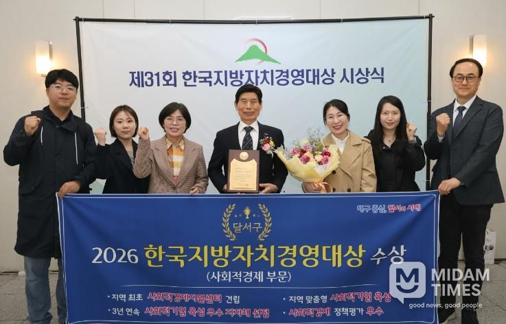 미담타임스 전해찬 기자 | 대구 달서구는 31일 (사)한국공공자치연구원이 주관한‘제31회 한국지방자치경영대상’에서 기관 부문‘사회적경제 대상’을 수상했다.