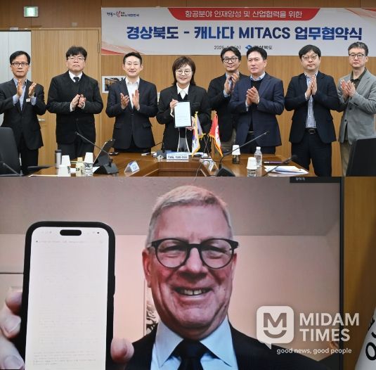 미담타임스 김준완 기자 | 경상북도는 1일 도청에서 양금희 경제부지사와 Mitacs 대표 스티븐 루카스(Stephen Lucas), 대학 관계자 등이 화상으로 참석한 가운데 캐나다 비영리 연구 협력기관인 Mitacs(마이탁스)와 업무협약을 체결하고, 항공 분야 청년 인재 양성 및 산·학·연 연계 산업 협력을 모색하기로 했다.