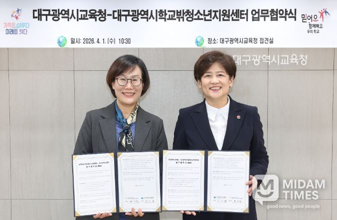 미담타임스 남혜영 기자 | 대구시교육청은 4월 1일 시교육청 접견실에서 대구학교밖청소년지원센터(센터장 최미송)와 ‘학교 밖 청소년 지원을 위한 업무협약’을 체결했다.