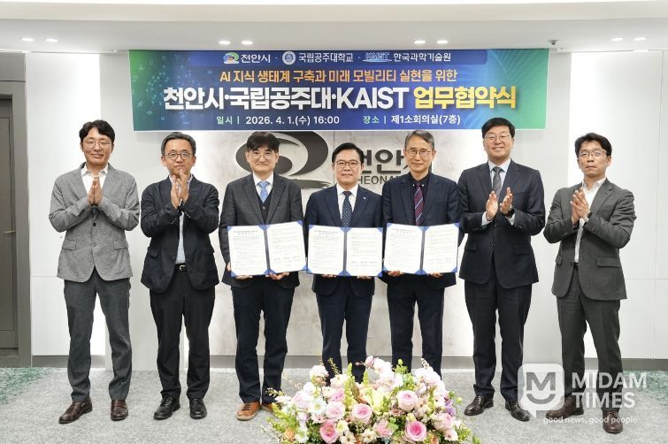 미담타임스 정인화 기자 | 천안시가 국립공주대학교, 한국과학기술원(KAIST)과 인공지능(AI)을 활용한 지역 혁신과 미래 모빌리티 산업 생태계 구축에 나섰다.