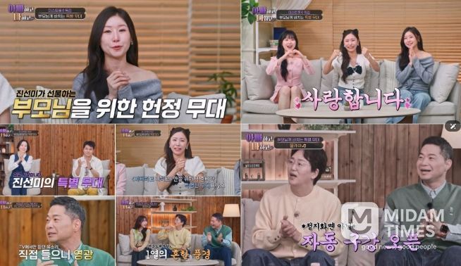 미담타임스 공한별 기자 | TV CHOSUN '아빠하고 나하고 시즌3'에 특별 출연한 ‘미스트롯4’ 진 이소나, 선 허찬미, 미 홍성윤이 세상에 단 하나뿐인 무대를 선보인다.