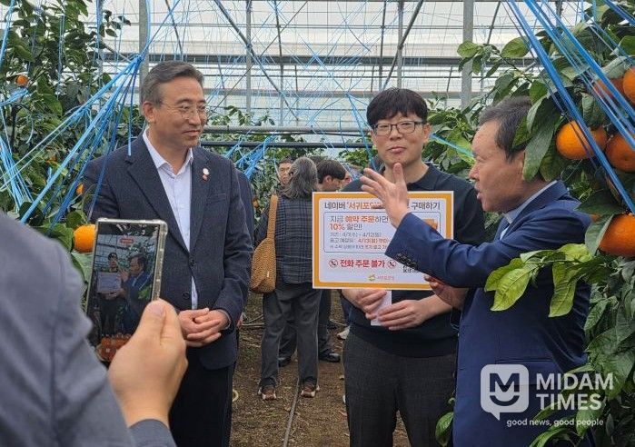 미담타임스 정인화 기자 | 서귀포시는 4월 1일, 감귤박물관과 카라향 하우스 일원에서 4월 출하를 앞둔 서귀포산 카라향 홍보를 위해 황창연 신부 영상 촬영에 오순문 서귀포시장이 동반 출연해 카라향 등 만감류 소비 촉진을 호소했다.