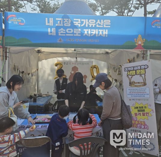 미담타임스 김준완 기자 | 고령군 국가유산 지킴이회(회장 김민규)가 지난 3월 27일부터 29일까지 3일간 열린 ‘2026 대가야 축제’에서 자원봉사 부스를 운영하며 일제강점기 국외로 반출된 ‘대가야금관’ 환수를 위한 범국민 서명운동을 펼쳐 큰 호응을 얻었다.