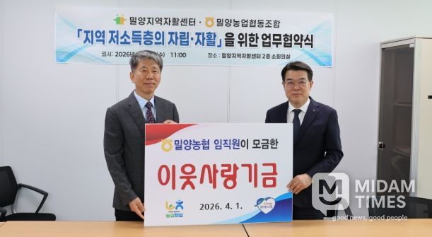 이번 협약을 통해 양 기관은 지역 내 기부문화 확산과 저소득층 지원을 위한 협력체계를 구축하고 저소득층 자립·자활 지원을 위한 협력을 강화하기로 했다. 특히 이날 협약식에서는 밀양농협 임직원들이 자발적으로 모금한 ‘사랑의 기금’ 300만원을 센터에 전달하며 나눔의 의미를 더했다.