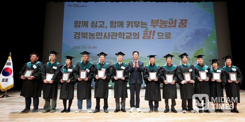 미담타임스 김준완 기자 | 경상북도는 4월 2일 경북도청 동락관에서 “함께 심고, 함께 키우는 부농의 꿈, 경북농민사관학교의 힘으로”라는 주제로 “2026년 경북농민사관학교 합동 개강식”을 개최했다.