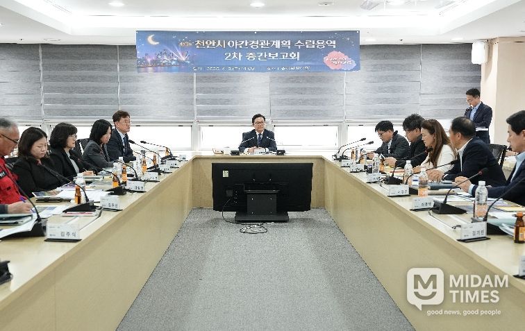 시는 3일 김석필 천안시장 권한대행 부시장을 비롯해 부서장 20여 명과 도시계획 및 조명디자인 분야 전문가들이 참석한 가운데 천안시 야간경관 계획 수립 용역 2차 중간보고회를 개최했다.