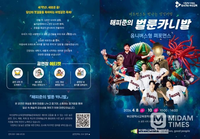 미담타임스 남혜영 기자 | 부산광역시교육청학생예술문화회관은 오는 8일부터 10일까지 학생예술문화회관 대극장에서 초·중·고 학생 2,400여 명을 대상으로 ‘해피준의 벌룬카니발’ 공연을 개최한다.