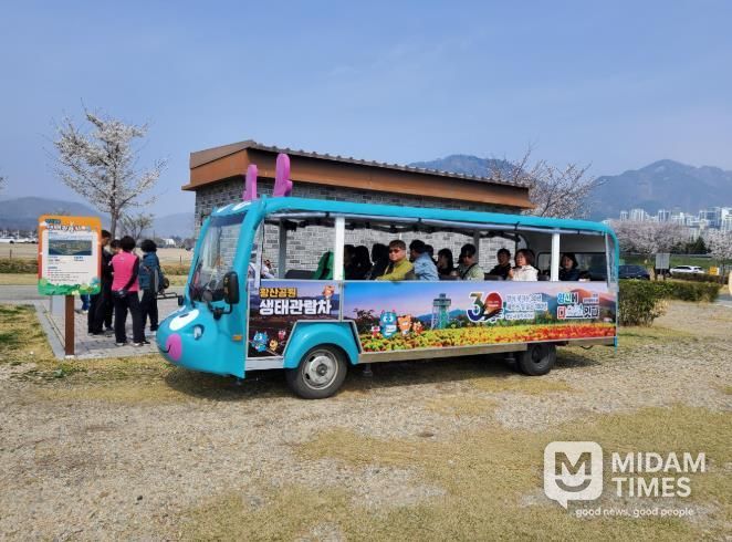 미담타임스 황명수 기자 | 양산시는 낙동강 수변공원인 황산공원을 순환하는 친환경 전기 생태관람차 시범운영을 시작했다고 밝혔다.