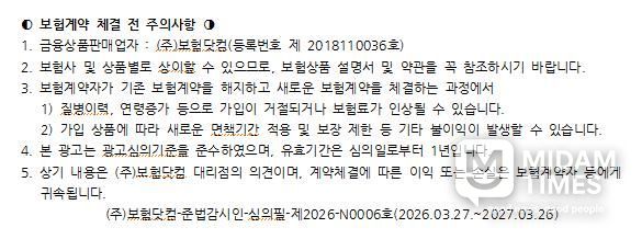 참고로 병력을 가지고 있는 사람이라면 유병자보험 상품을 고려해 볼 수 있다. 유병자보험은 간편심사보험이라 칭하는데, 유병력자에 대한 가입조건이 보다 완화된 상품인 만큼 유병자라면 검토해 보는 것이 권장된다. 단, 가입 시 고지의무 준수는 필수적이므로 추후에 불이익이 발생하지 않도록 주의를 기울여야 한다.