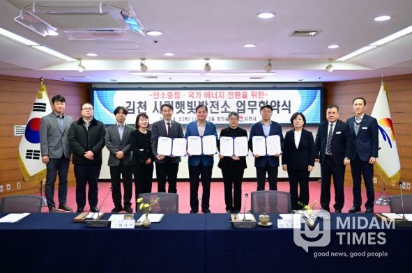 미담타임스 김준완 기자 | 김천시는 4월 2일, 대구지방환경청, 경상북도탄소중립지원센터, (사)누구나햇빛발전과 함께 ‘경북 1호 김천 시민햇빛발전소’건립을 위한 업무협약을 체결했다. 이번 협약은 공공 유휴부지를 활용해 시민이 참여하는 재생에너지 모델을 구축하기 위해 추진됐다.