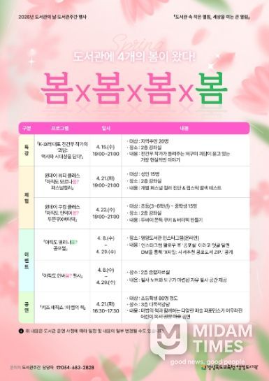 이와 함께 ▲8일부터 29일까지 인스타그램을 활용한 온라인 이벤트 ‘아직도 떨리나봄? 공포썰’과 2층 종합자료실 내 자유 필사 공간을 제공하는 이벤트 ‘아직도 안써봄? 필사’를 통해 지역주민의 참여를 독려할 예정이다.