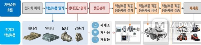이번 사업은 단순 재활용을 넘어, 전기차 폐배터리를 중심으로 모터·감속기·인버터 등 핵심 구동부품까지 포함한 전주기 순환이용 체계를 구축하는 것이 핵심이다.