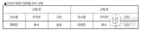 KBO, 2026 WBC 대표팀 선수 교체 승인 요청