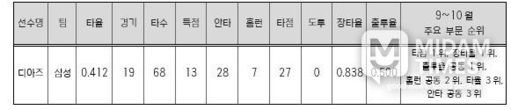 삼성 디아즈, 2025 신한 SOL뱅크 KBO 리그 9~10월 월간 MVP 선정