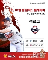 두산 잭로그, LG 오스틴, 2025 KBO 리그 9-10월 ‘쉘힐릭스플레이어’로 선정