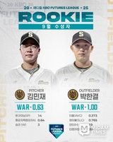9월 메디힐 퓨처스 루키상 투수 상무 김민재, 타자 상무 박한결 선정