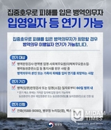 병무청, 집중호우로 피해를 입은 병역의무자 입영일자 등 연기 가능