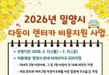 밀양시, 2026년 다둥이 렌터카 비용 지원 사업 추진