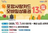 포항시, 추석 맞아 260억 규모 카드형·모바일 포항사랑상품권 13% 할인 판매
