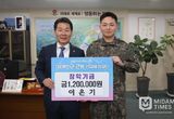군복무 이은기씨, 부안군 근농인재육성장학금 120만원 기부