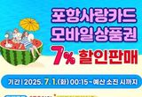 포항시, 내달 1일 카드형·모바일 포항사랑상품권 7% 할인 판매
