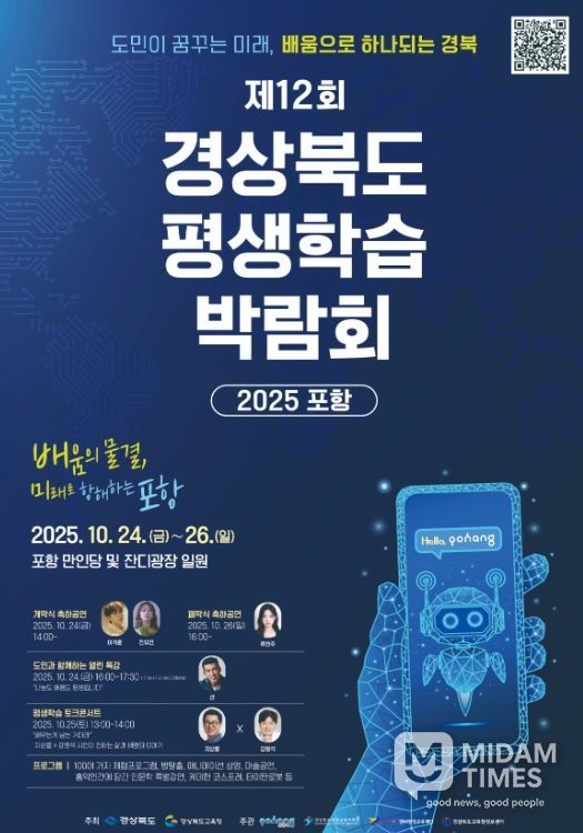 미담타임스 김준완 기자 | 경북교육청은 10월 24일부터 26일까지 3일간 포항시에 있는 만인당과 잔디광장 일원에서 ‘제12회 경상북도 평생학습박람회–2025 포항’을 개최한다고 26일 밝혔다.