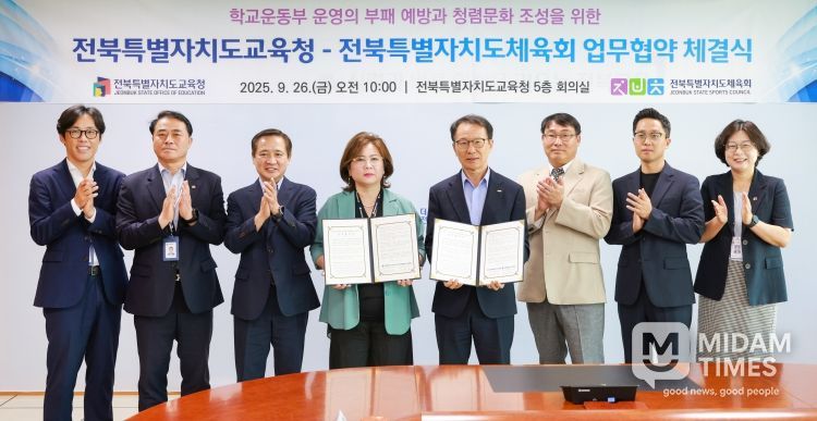 미담타임스 박민정 기자 | 전북특별자치도교육청과 전북특별자치도체육회가 공정하고 투명한 학교 운동부 환경 조성을 위해 손을 맞잡았다.