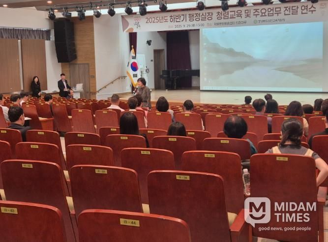 미담타임스 김준완 기자 | 경상북도김천교육지원청은 9월 29일 13시 학생문화예술센터 드림마루에서 관내 초·중·고등학교 행정실장을 대상으로 청렴교육 및 주요업무 전달연수를 개최했다.