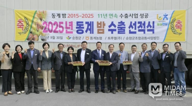 한편, 2025년 동계 밤 수출은 약 250톤, 6억 5,000만 원 규모에 이를 것으로 예상되며, 이번 선적을 계기로 지역 농가와 관계기관의 기대가 더욱 커지고 있다.