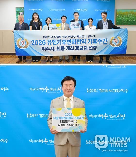 미담타임스 정인화 기자 | 여수시는 ‘2026년 유엔기후변화협약(UNFCCC) 기후주간(Climate Week)’ 대한민국 개최도시 공모에서 최종 후보지로 선정됐다고 밝혔다.