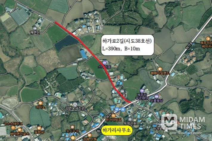 미담타임스 김준완 기자 | 제주시는 애월읍 하가리 시도 38호선(L=390m, B=10m) 구간에 대한 도로 확·포장 공사를 마무리하고 9월 준공했다.