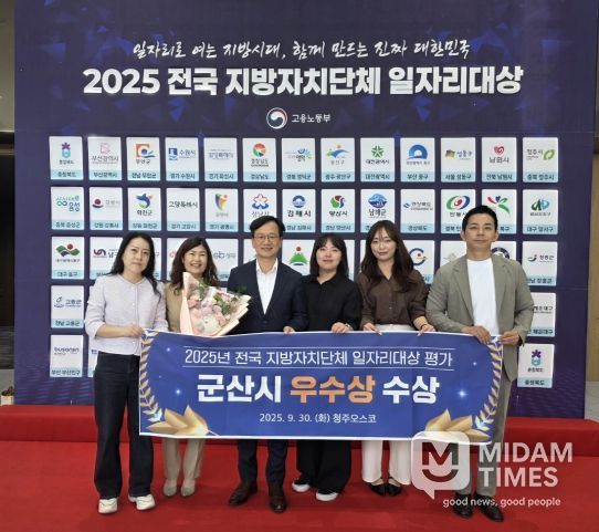 미담타임스 정인화 기자 | 군산시가 30일 청주오스코에서 열린 고용노동부 주관 ‘2025년 전국 지방자치단체 일자리 대상’에서 3년 연속 일자리 공시제 부문 우수상(장관상)을 수상했다.