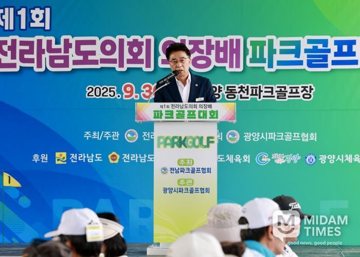 미담타임스 정인화 기자 | 전라남도의회 김태균 의장은 9월 30일 광양 동천파크골프장에서 개최된 ‘제1회 전라남도의회 의장배 파크골프대회’ 개회식에 참석하여 선수와 임원들을 격려했다.