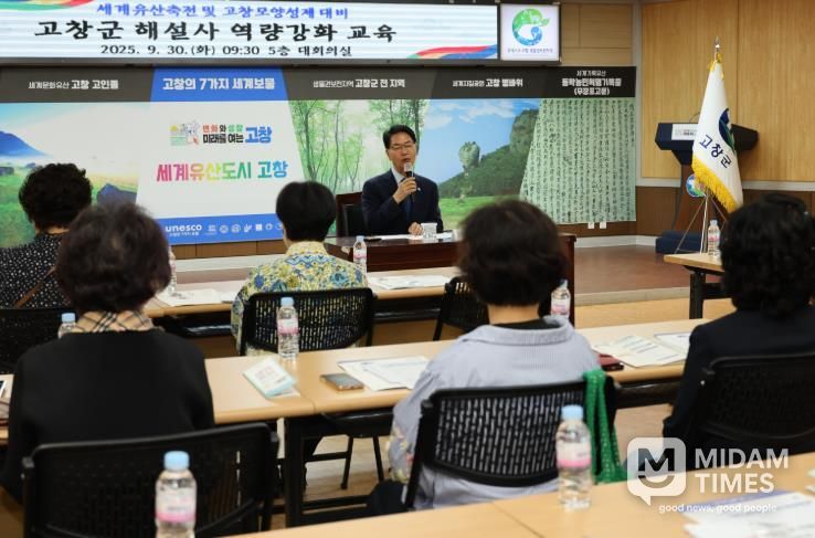 미담타임스 정인화 기자 | 고창군이 30일 군청 5층 회의실에서 ‘2025 세계유산축전(10월2~22일)’과 ‘제52회 고창모양성제(10월29일~11월2일)’를 앞두고 해설사 친절교육을 실시했다.