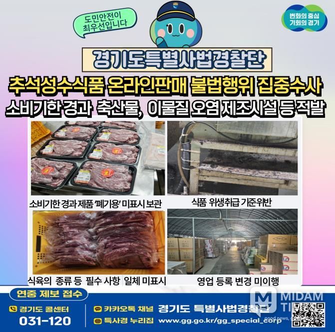 미담타임스 정주환 기자 | 경기도 특별사법경찰단은 추석을 앞두고 도내 식품제조․가공업소, 축산물 가공·판매업소 360곳을 대상으로 집중 수사를 실시한 결과, 총 10건의 불법행위를 적발했다고 밝혔다.