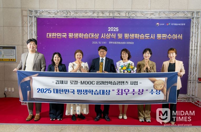 미담타임스 정인화 기자 | 김제시가 생활 속 평생학습을 실천하고 있는 우수사례를 발굴해 시상하는 '제22회 대한민국 평생학습대상'에서 '디지털 학습시대 무형의 학습자산을 만드는 김제형 로컬-MOOC 구축사업'으로 올해의 평생학습사업 최우수상을 받았다.
