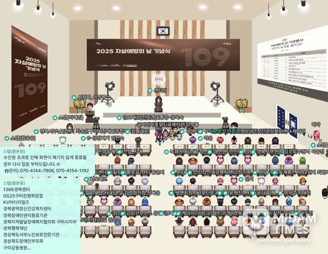 미담타임스 김준완 기자 | 구미시는 정신건강과 자살예방의 중요성을 알리기 위해 지난 1일 메타버스 플랫폼(ZEP) ‘구미정신건강월드’에서 '제13회 자살예방의 날 기념행사-희망의 날개를 펼치며'를 개최했다.