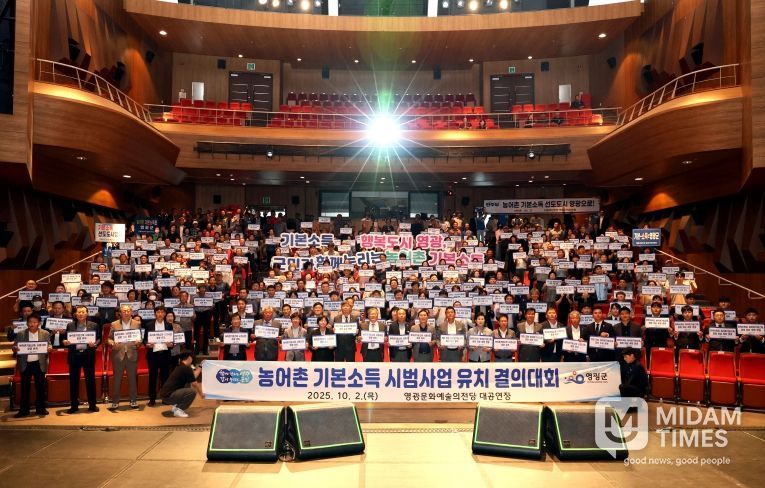 미담타임스 정인화 기자 | 영광군은 지난 10월 2일 오후 2시, 영광문화예술의전당 대공연장에서 '농어촌기본소득 시범사업 유치 결의대회'를 성황리에 개최했다.