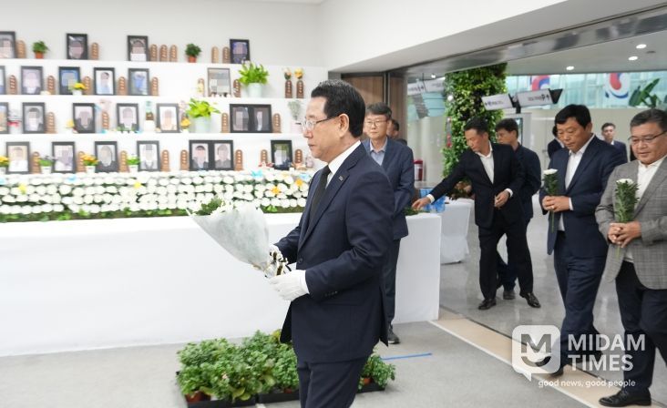 미담타임스 정인화 기자 | 김영록 전라남도지사는 추석을 앞둔 3일 제주항공 여객기 사고 희생자 무안공항 합동분향소를 찾아 헌화·분향하며 희생된 분들의 넋을 기렸다.