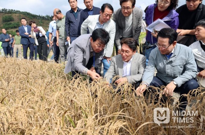 미담타임스 정인화 기자 | 장흥군은 김민석 국무총리가 7일 장흥군 안양면 해창리 일원을 방문해 ‘벼 깨씨무늬병’ 피해 현장을 점검했다고 전했다.