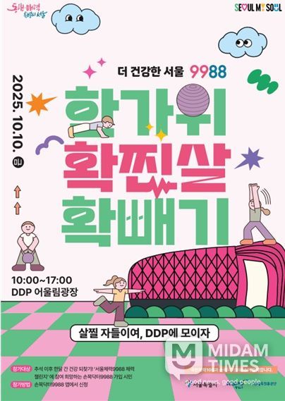 한편 서울시는 지난달 ‘99세까지 팔팔하게’ 잘 살기 위해서, 운동량도 늘리고, 밥상도 바꾸고, 생활 습관챙기는 종합대책 ‘더 건강한 서울 9988’을 발표했다. 이번 프로젝트는 ▴365일 운동하는 도시 ▴건강한 먹거리 도시 ▴어르신 건강 노화 도시 ▴건강도시 디자인 4대 과제를 통해 2030년까지 서울시민의 운동 실천율을 3%p 올려 운동을 통해 시민체력등급을 3등급 더 올리고 건강수명을 3살 늘리는 ‘3-3-3-3 프로젝트’가 주요내용이다.
